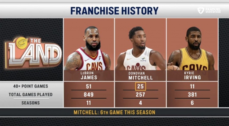 米切尔本赛季第6场40+ 骑士生涯第25场 仅次于詹姆斯