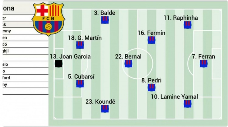 阿斯预测巴萨首发:拉菲尼亚、费兰、亚马尔三叉戟,贝尔纳尔在列